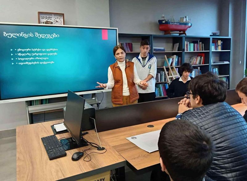 კლასის საათი ჩატარდა კურატორ გიული ბერიძესთან ერთად და წარიმართა კითხვა-პასუხის რეჟიმში, რამაც ახალგაზრდებს საშუალება მისცა გაეზიარებინათ საკუთარი აზრები და გამოცდილება ბულინგის თემაზე.